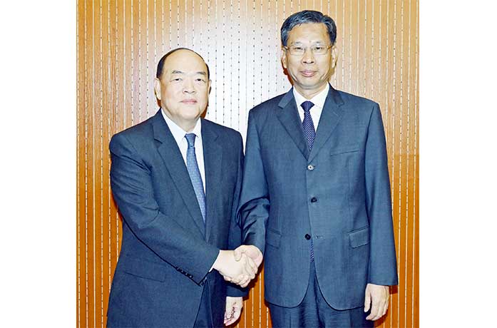 【特訊】行政長官賀一誠昨日在北京與財政部部長劉昆會面,雙方就進一步推進澳門經濟適度多元化及粵澳(橫琴)深度合作區等議題交流意見。