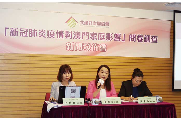 該會於七月下旬,展開 “新冠肺炎對澳門家庭影響”問卷調查,調查對象為十八歲或以上澳門居民,共收集 一千五百零五份有效問卷。有近六成六受訪者表示受疫情影響感到焦慮不安;五成六七受訪者表示疫情對其經濟收入支出造成負面影響;兩成三七受訪者表示自己與家人關係產生負面影響;六成六受訪者表示工作/學習安排產生衝擊;三成八受訪者認為照顧家人對他產生負面影響;三成半受訪者認為在自己及家人健康受到負面影響;近七成受訪者認為疫情對他的社交活動受到負面影響。此外,三成二的受訪者擔心面臨失業/無薪假或減薪;接近三成受訪者表示工作量增加,另有將近一成四受訪者認為需要照顧家人,無法兼顧工作或學習,而女性在上述問題的壓力又高於男性。