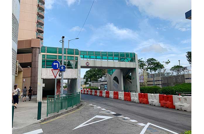 鄭綺霞指,漁翁街東北角中德學校對開的一條行人天橋,是居民過馬路前往巴士站及水塘的唯一方式,但由於沒有升降機,對長者及嬰兒車使用者最為不便,導致使用率低,當局加設水馬,防止有人胡亂過馬路,但情況未有改善。漁翁街天橋橋身殘舊,扶手不連續、缺乏無障礙設施等,居民往往冒險橫過馬路,安全堪憂。她建議當局因應有新行人天橋即將落成的契機,改善漁翁街行人天橋設施,如增加電梯,改善天橋扶手不連續的問題,方便居民使用。另外,使用漁翁街行人天橋多數往水塘或巴士站方向,建議將天橋延展,連接至水塘跑步徑,擴大天橋的使用效益。