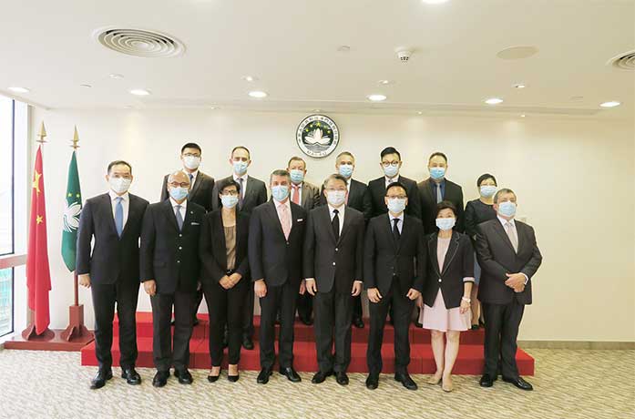 【特訊】葡萄牙駐澳門及香港總領事歐冠溢及葡中工商會澳門分會理事長梁華權一行於日前拜訪澳門特別行政區政府經濟財政司司長李偉農,就疫情下的中葡經貿聯繫、大灣區發展及疫後經濟恢復等問題進行交流。
