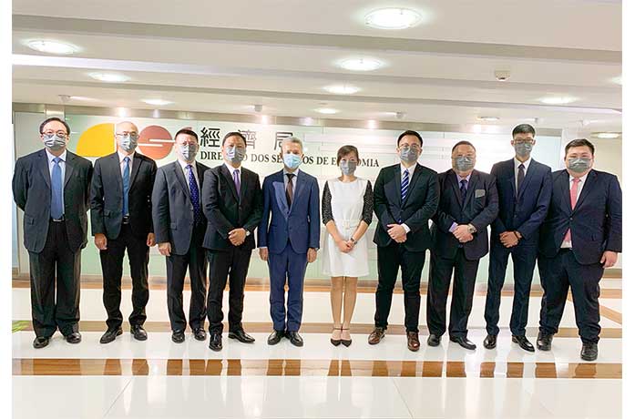 【特訊】「澳門企業促進會」及「澳門美食旅遊協進會」會長黃耀武一行十人日前拜訪經濟局局長,獲局長戴建業、經濟合作處處長米鵬、促進營商處處長劉傑麟親切接見,雙方圍繞產經數碼發展及盤活小區經濟等議題進行交流座談。