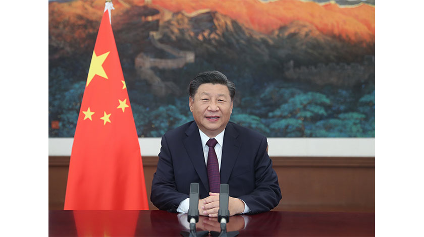 習近平在2020年中國國際服務貿易交易會全球服務貿易峰會上致辭9月4日,國家主席習近平在2020年中國國際服務貿易交易會全球服務貿易峰會上致辭。(新華社記者 鞠鵬 攝)