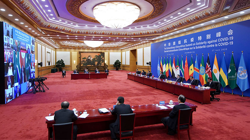 6月17日晚,習近平在北京主持中非團結抗疫特別峰會並發表題為《團結抗疫 共克時艱》的主旨講話。(新華社記者 丁海濤 攝)