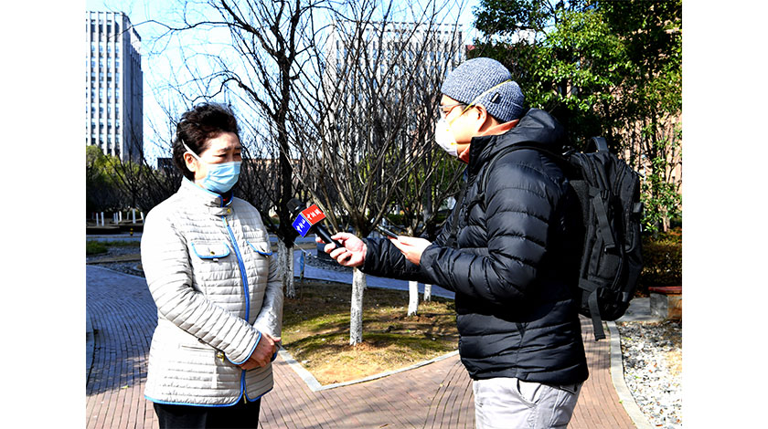 8日,全國抗擊新冠肺炎疫情表彰大會在北京人民大會堂舉行。身為投入這場抗疫鬥爭的新聞工作者中一員,中國新聞社青年記者楊程晨作為中新社戰疫報道群體的代表,受表彰為『全國抗擊新冠肺炎疫情先進個人』。資料圖為2月17日,湖北武漢,楊程晨採訪李蘭娟院士。(中新社記者 安源 攝)