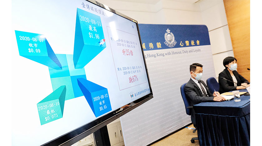 香港警方毒品調查科總警司鍾詠敏指出,被捕人士涉嫌操控壹傳媒股價不法牟利,他們利用社交媒體群組溝通,大量密集式買賣壹傳媒股票,合共交易1.32萬次,涉及16.9億股,佔整體交投量近兩成四。隨後在高位沽貨,從中獲利3870多萬元,其中一人獲利2500多萬元。