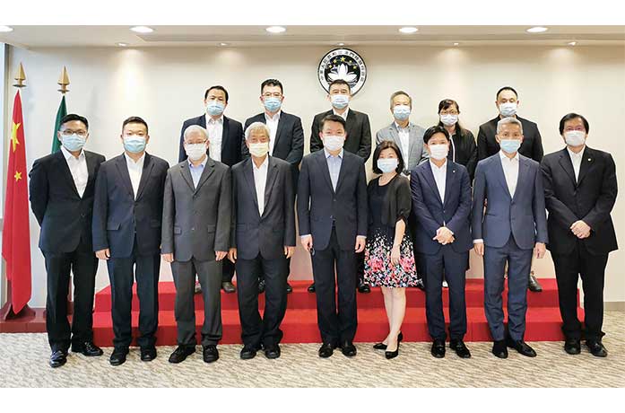 會長葉兆佳首先感謝澳門特區政府及經濟財政司各項支持民生,扶持中小微企的措施,增添了業界共度時艱的信心,一直以來,得到經濟財政司的支持,公會多方面為業界尋求提升自身綜合競爭力的發展方向,包括與政府舉辦不同的行業培訓課程,“滬澳黃金之路”的完善,以及金業公會從2014年便開始籌劃『黃金珠寶鑑定中心及培訓中心』的項目方案,未來也希望可以繼續推動計劃的落成,提升行業的競爭力,品牌力。理事長李居仁關注行業向“跨境電商”轉型的重要性,希望能盡快打通及放寬金飾行業“跨境電商”的渠道,讓業界在疫情下盡快尋求更大的生存和發展空間。