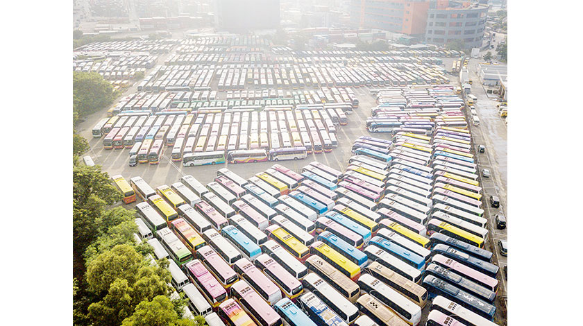 靠近香港葵涌碼頭,逾800輛旅遊巴士停止運營約半年,塞滿了這個約五萬平方尺的停車場。從高處往下看,不同顏色的旅遊巴,鱗次櫛比地排列,場面震撼。香港旅行社東主協會會長葉慶寧稱之為,“這是香港旅遊巴士的‘墳場’。”(香港中通社)