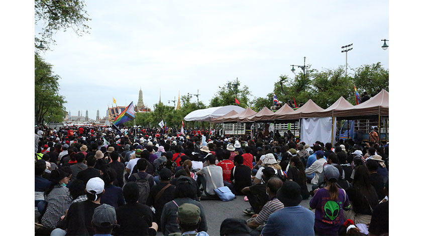 泰國示威者遊行前往大王宮遞交請願書後和平結束集會