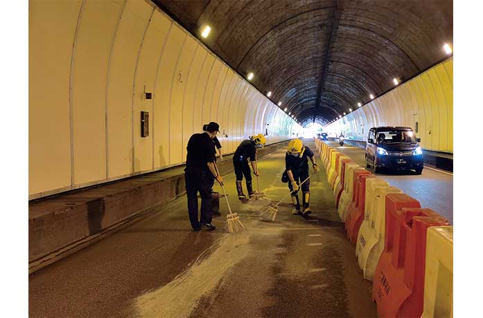 當局於昨早八時五十五分封閉松山隧道有油漬之行車線,進行清理,至上午十時四十五分完成清理解封。由於松山隧道是重要交通幹道,在封路期間,附近周邊道路出現嚴重塞車,交通幾乎癱瘓。