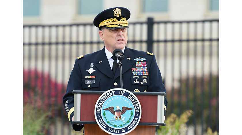 當地時間10月6日,美國國防部稱,由於美國海岸警衛隊副司令查爾斯•雷新冠病毒檢測呈陽性,10月2日曾與他在五角大樓一同開會的美軍領導層已自我隔離。美國多家媒體報道稱,當天與雷一同開會的包括美軍參聯會主席馬克•米利、參聯會副主席約翰•海頓、太空軍司令約翰•雷蒙德等軍方高層。資料圖為馬克•米利9月在五角大樓出席活動。(中新社記者 陳孟統 攝)