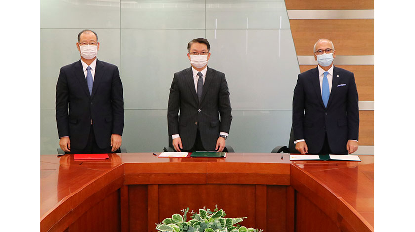 經濟財政司司長李偉農代表特區政府,分別與中國銀行澳門分行行長李光及大西洋銀行董事會副主席區偉時(Carlos Cid Álvares)簽署新一份代理發行具法定流通力的紙幣合同。