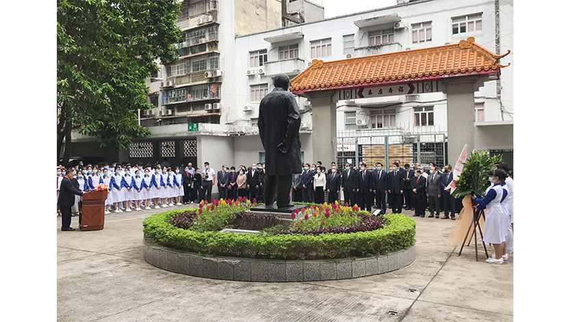 中聯辦協調部部長傅鐵生、外交部駐澳特派員公署政策研究室主任冉波,以及一眾鏡湖慈善會成員昨早出席該活動,並向孫中山銅像致送花籃,以表敬意。