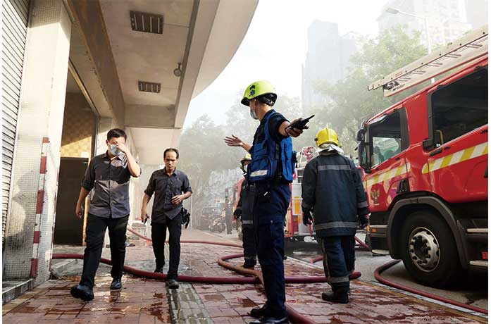 昨日下午四時許,消防接報美副將大馬路萬基工業大廈二樓發生火警。消防到場見大廈二樓冒出濃煙,即拖喉到大廈二樓一間家具工場,有職員報稱噴漆房起火並有一個花灑頭啟動,消防員拖喉入內射水將火撲熄。