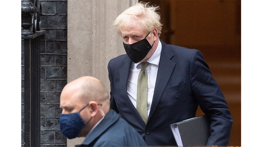 12日,在英國倫敦,英國首相伯里斯•詹森(右)離開首相府前往議會。英國首相詹森12日公佈了一個適用於英格蘭的三級新冠警戒系統,每一級別對應不同的疫情嚴重程度以及相應的應對措施,以進一步規範和簡化英格蘭各地落實疫情防控措施的程式。新華社發(雷伊•唐攝)
