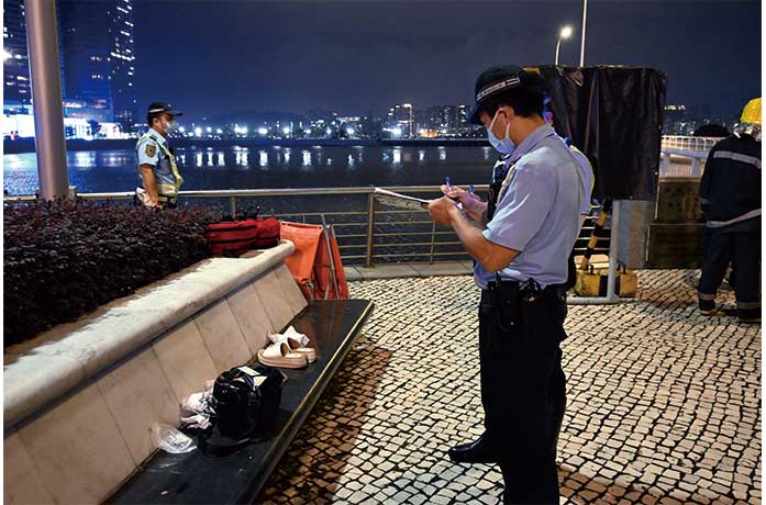 昨晚七時許,警方接報舊大橋澳門橋口有人跳海。海關和消防人員於大橋口附近花圃石凳發一雙女裝鞋和一個女裝手袋,檢查內有手提電話和銀包等物品,附近未發現該女子,海關和消防人員於大橋附近一帶搜索,而海關快艇和蛙人於海面搜索。