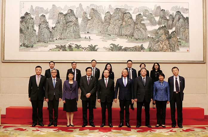 【特訊】澳門城市大學校董會陳明金主席率領大學管理層拜訪中央政府駐澳門聯絡辦公室主任傅自應。就城大未來發展聆聽指導建議,並就高等教育發展、人才培養等議題深入交流。羅永綱副主任參加會見。傅自應主任對城大管理層一行來訪表示歡迎,充分肯定城大在培養人才、服務社會等方面發揮的積極作用和取得的成績。