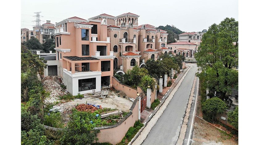 10月20日,湖南長沙市雨花區同升湖山莊內的眾多別墅閑置無人入住,庭院內雜草叢生。物業人員稱,目前有78棟別墅和60棟花園洋房都存在無人認領的問題。關於同升湖山莊閑置別墅的問題,目前相關部門已在調查中。(中新社記者 楊華峰 攝)