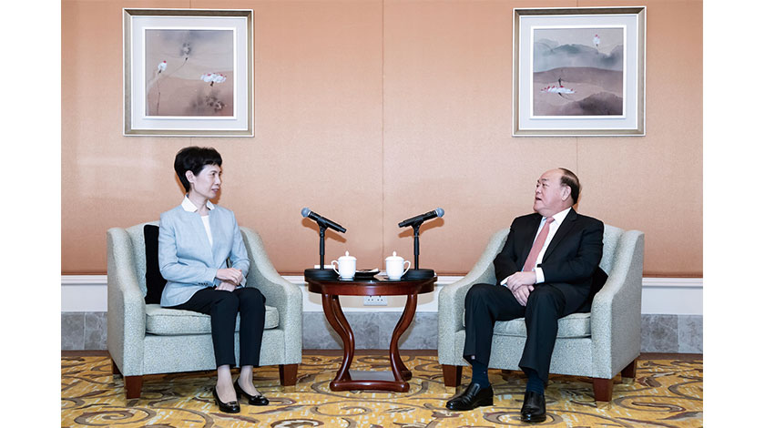 出席會面的還有行政長官辦公室主任許麗芳;中國國際貿易促進委員會發展研究部部長聶文慧、國際聯絡部部長李慶霜,以及駐澳門代表處總代表崔文龍等。
