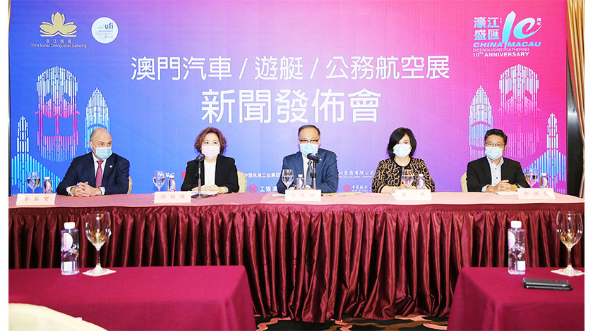 南光國際會議展覽有限公司總經理廖奇輝、中國機械國際合作股份有限公司展覽總監黃燕、南光國際會議展覽有限公司副總經理周晉陽、南光國際會議展覽有限公司項目經理繆慈欣、澳門會議展覽業協會總幹事譚瑞儀、金沙中國度假村營運高級副總裁麥萃賢、澳門機動車進口商會理事長鄭穎堯、澳門遊艇會理事長卓重賢、澳門勵駿創建有限公司執行董事周宏學、澳門機場專營股份有限公司物流暨通用航空發展部副總監唐瑤、TAG亞洲宇航(澳門)有限公司總經理譚淑敏等嘉賓出席了新聞發佈會。