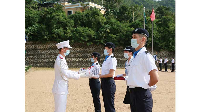 【特訊】昨日,澳門保安部隊高等學校舉行2019年海關關員入職培訓課程結業禮。早上8時正,在校內舉行升國旗及區旗儀式;隨後,結業禮正式開始,典禮由校長黃子暉主持,出席人員包括副校長林壘立、各主管、學員及各職級員工代表。