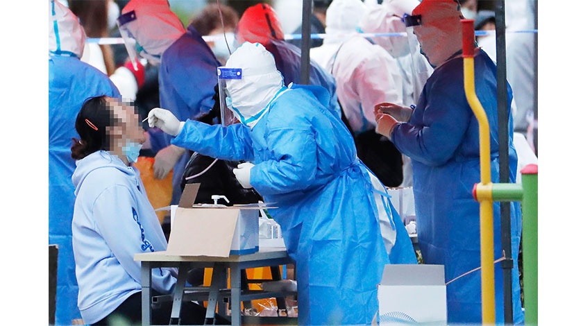 11月22日,上海新增2例本地新冠肺炎確診病例,其居住地浦東新區張江鎮順和路126弄小區列為中風險地區。圖為順和路126弄小區居民正在進行核酸檢測。(中新社記者 殷立勤 攝)