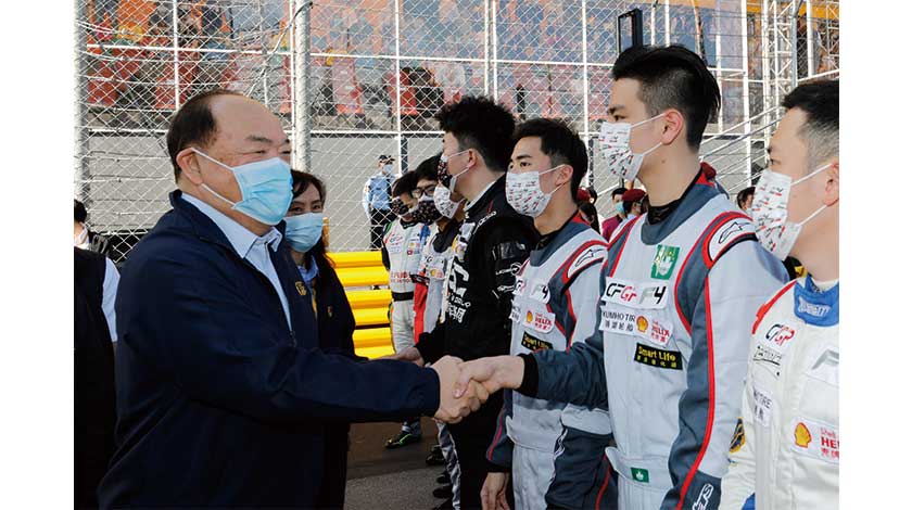 行政長官賀一誠與第67屆澳門格蘭披治大賽車四級方程式大賽參賽者握手