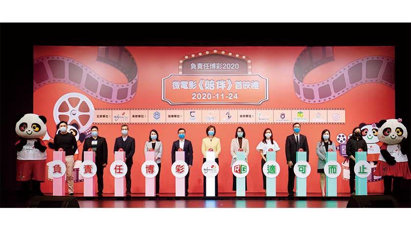 【特訊】永利一直透過舉辦多元活動,持續向團隊成員及公眾推廣負責任博彩。為配合特區政府負責任博彩推廣系列活動的主題“一「瘋」家「輸」”,永利延續去年舉辦的「負責任博彩劇本創作比賽」,把得獎作品製作成微電影,透過社交平台進行播放及宣傳,進一步加強社會大眾對負責任博彩的關注和認知。「負責任博彩 2020 微電影《賠伴》首映禮」於昨(24)日下午四時假永利澳門宴會廳順利舉行,吸引了過百名嘉賓、相關的服務機構代表、本澳師生及其親友出席。