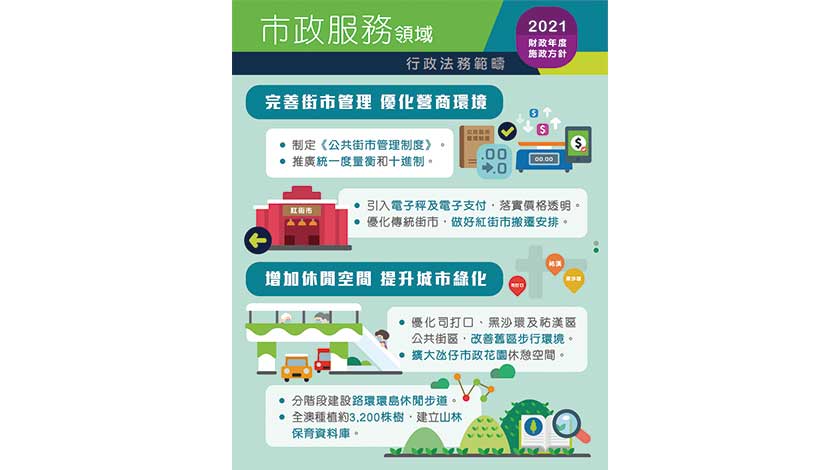 行政法務範疇的明年工作計劃之一,是以雀仔園街市作為試點,重新規劃及設計現有檔位的排列及布局,優化傳統街市的經營及購物環境。張永春解釋,其他街市已經相當擠迫,難以發展;雀仔園街市現有較多攤檔閒置,具備條件讓市政署改善,現正進行研究、分析。
