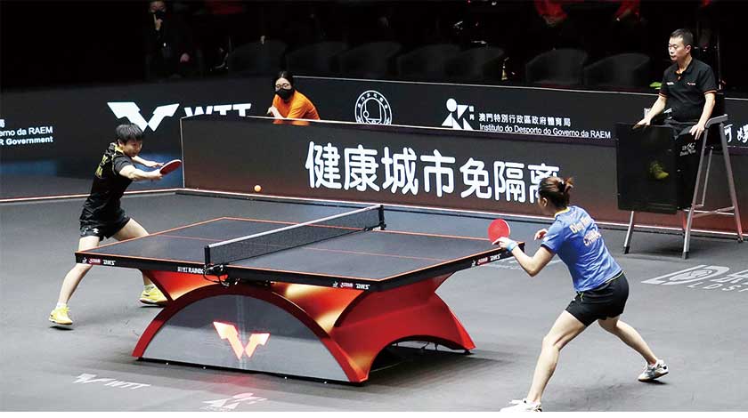 【特訊】由澳門特別行政區政府體育局及世界乒乓球職業大聯盟(WTT)主辦、澳門乒乓總會協辦的「WTT 澳門國際乒乓球賽 2020 ─ 由銀河娛樂集團呈獻」昨日 (26日)在塔石體育館進行第二天的賽事。國家隊馬龍與許昕、陳夢與王曼昱隊內大戰,王曼昱以局數3:1力克陳夢,而許昕與馬龍打足五局才分勝負,許昕發揮較佳以局數3:2勝出。