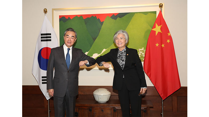 當地時間11月26日,對韓國進行正式訪問的國務委員兼外長王毅在首爾同韓國外長康京和舉行會談。(新華社記者 王婧嬙 攝)