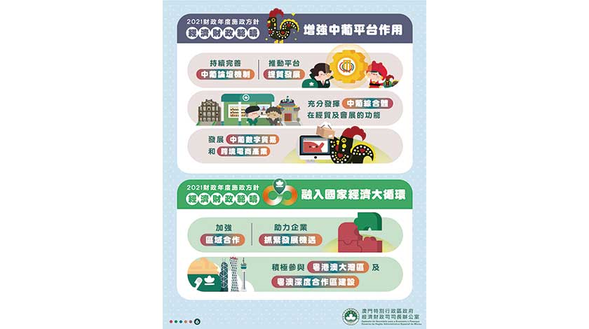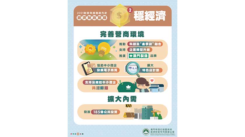 施政報告也提出,扶持已進駐粵港澳大灣區內地城市孵化中心的澳門青創企業,提供生活費補助。經濟局局長戴建業補充,有關措施研究中,待條件合適就會公布。目前構思面向進駐中心的十八至四十四歲本澳居民,規定要參與中心的培訓和活動,每月須有一定時間停留在當地。唯未有披露金額。