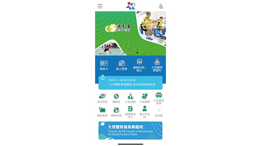 【特訊】為配合特區政府的電子政務工作,體育局於本年12月1日推出全新手機應用程式,加入多項實用性的新功能,新增「運動易電子會員卡」及運動易「親情號」設置,為運動易會員帶來更簡單便捷的新體驗。