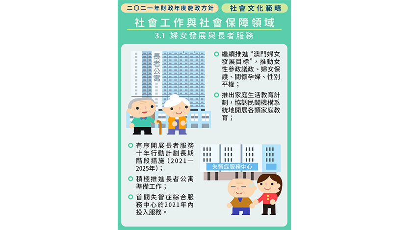 明年社文施政包括逐步落實黑沙環P地段內的長者公寓計劃,跟進其建設及相關的配套規劃,並構思有關的智慧養老方案。多位議員都關心約提供一千八百單位、酒店式的長者公寓及智慧養老進一步內容。