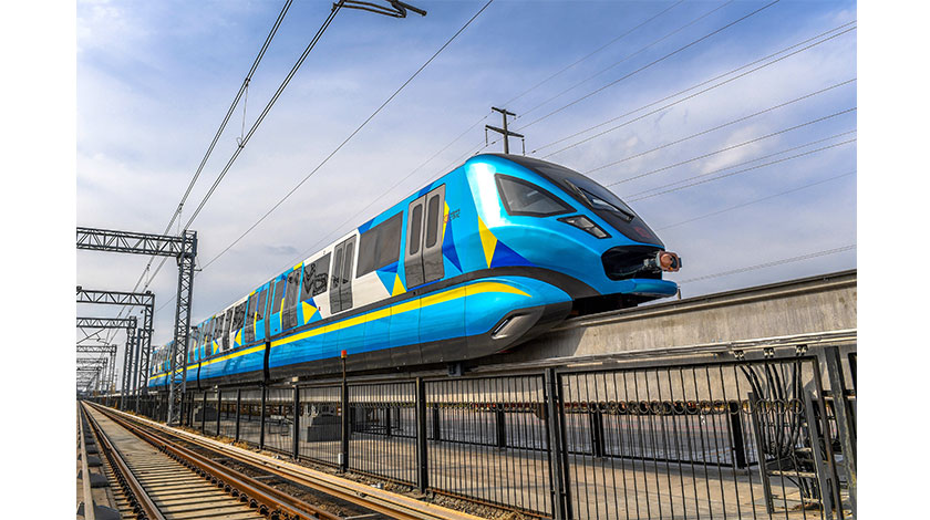 2日,中車四方股份公司發佈消息稱,日前,由該公司研製的新一代跨座式單軌列車在位於青島的試驗線上成功試跑並正式下線。該車具有完全自主知識產權,車輛最高運行時速為100公里,是目前中國速度等級最高的跨座式單軌列車。該車兼具地鐵與單軌列車技術優勢,標誌著中國在跨座式單軌車輛技術領域取得新突破。圖為10月12日,新一代跨座式單軌列車在試驗線上試跑。(中新社發 薑超 攝)