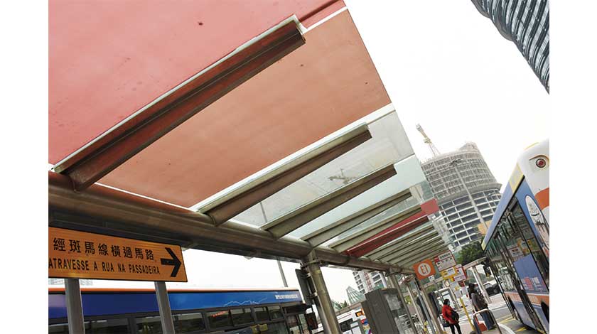 十月開始的亞馬喇巴士站增建雨篷工程將在本週完成;近日,有傳媒發現,部份雨篷頂部多了一片類似「玻璃紙」物料。交通事務局局長林衍新回應,雨篷下與雨篷外的溫度已相差約攝氏十度;現在部份雨篷頂部增貼物料,可再降低約攝氏三度。他指出,在全部雨篷頂部增貼物料,花費約二十萬;現時在試驗階段,待得出更多數據後,便按效益決定是否在全部雨篷頂部增貼。