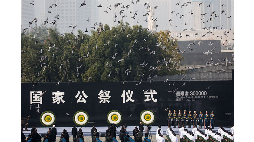 12月13日,南京大屠殺死難者國家公祭儀式現場。當日是第七個南京大屠殺死難者國家公祭日,南京大屠殺死難者國家公祭儀式在侵華日軍南京大屠殺遇難同胞紀念館舉行。(中新社記者 泱波 攝)