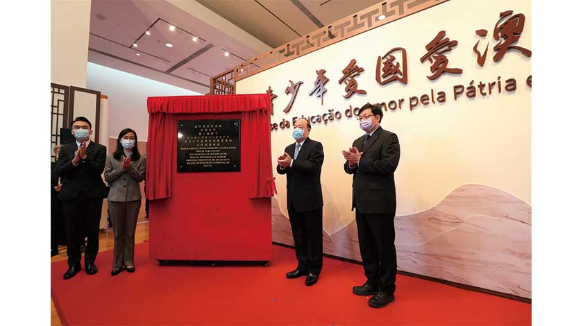 【特訊】為推動澳門愛國愛澳教育發展,培養青年的家國情懷,特區政府於澳門回歸賀禮陳列館設立青少年愛國愛澳教育基地,建構一個集展覽、培訓、多媒體及影視於一體的綜合場地,作為澳門學校及社團開展愛國愛澳教育的重要場所。青少年愛國愛澳教育基地揭幕典禮於昨日舉行,由行政長官賀一誠主持揭幕典禮,並由全國政協何厚鏵副主席、中央人民政府駐澳門特別行政區聯絡辦公室羅永綱副主任、外交部駐澳門特別行政區特派員公署王冬署理特派員、澳門特別行政區立法會高開賢主席、澳門特別行政區政府社會文化司歐陽瑜司長和中國國家博物館單威副館長進行啟用儀式。出席嘉賓包括:澳門特別行政區全國人民代表大會代表、中國人民政治協商會議全國委員會澳門地區委員、澳門天主教學校聯會代表、澳門青年聯合會代表、澳門中華學生聯合總會等。