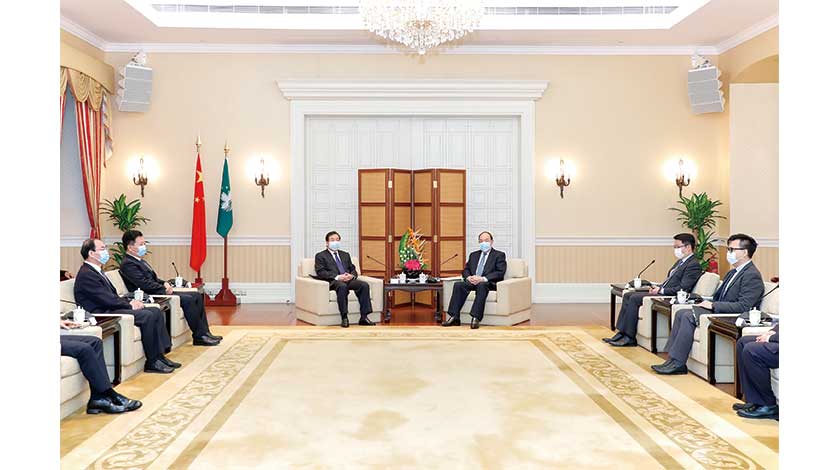 行政長官首先歡迎孫立成書記一行到訪澳門,他表示,鲁澳兩地過去在旅遊和經貿等方面已打下良好的合作基礎,期望雙方日後繼續加強溝通,促進兩地經濟和人文交往。他指出,澳門致力經濟適度多元發展,而中醫藥產業作為重要的先行先試項目,特區政府將充分利用“一國兩制”的制度優勢,助力中醫藥產業開拓葡語系國家市場,並為內地中醫藥企業來澳發展創設平台,包括完善相關法律法規,為澳門逐步走向多元的發展創設有利環境。