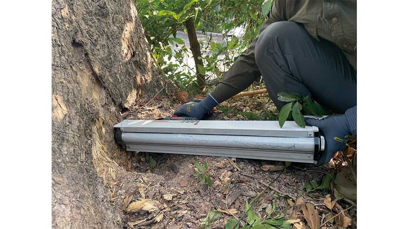 巡查人員於本年八月曾檢查該樹根系的褐根病感染狀況,情況一般,至十一月巡查時,發現該株古樹生長勢突然下降,樹冠葉片數量及面積較正常樟樹稀少,並出現非正常的大量落葉,葉色較淡,長勢明顯不良。有見及此,市政署立即派員修剪古樹的樹冠枯枝,再使用樹木儀器檢查及比對表徵,發現樹基和樹根多處呈碎木及軟腐狀態,整體生長則呈現下降趨勢,故此計劃加設支撐架,並持續監察其狀況。