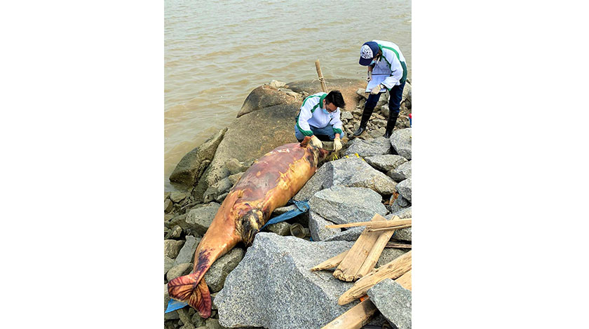 【本報訊】市政署接獲市民通報,在鄰近路環發電廠的九澳三聖廟外石灘發現一條海豚屍體,初步鑑定為中華白海豚。這是本澳今年發現五條海豚屍體,當中四條為中華白海豚。