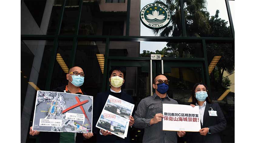 【本報訊】昨日,新澳門學社到政府總部遞信,既批評工務局「偷步」公示兩份破壞景觀的規劃條件圖草案,手法粗暴;也促請行政長官賀一誠指示該局撤回「極具破壞性」的草案,以維護「山-海-城」景觀。