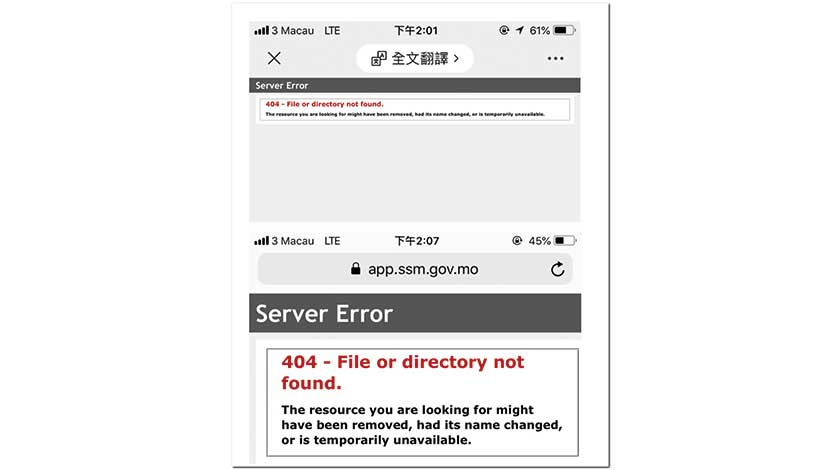 【本報訊】澳門健康碼新增地址補充登記功能昨日中午上線,惟不久系統出現故障,期間無法登入生成健康碼,到下午約二時才逐步恢復正常。新型冠狀病毒感染應變協調中心就此致歉,並稱暫未確定故障是否與新增功能有關,但決定先暫停功能。