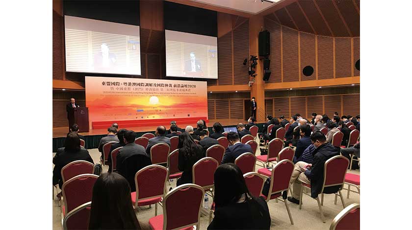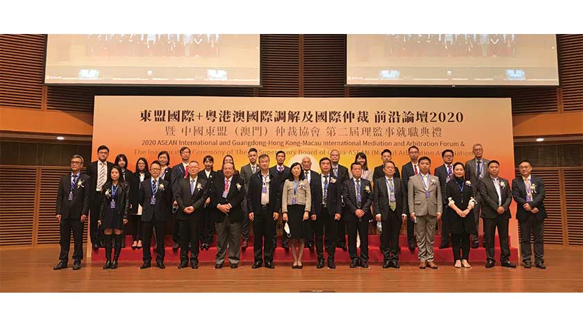 (澳門)仲裁協會昨早假科學館舉辦「東盟國際+粵港澳大灣區國際調解-國際仲裁前沿論壇二零二零」,會上簽署了合作協議,期望藉此推動東盟圈、中葡商事糾紛適度多元平台構建。以及舉行了中國東盟(澳門)仲裁協會第二屆理監事就職典禮,以及向約三十名完成國際慣例專業訓練的國際調解員頒發證書。