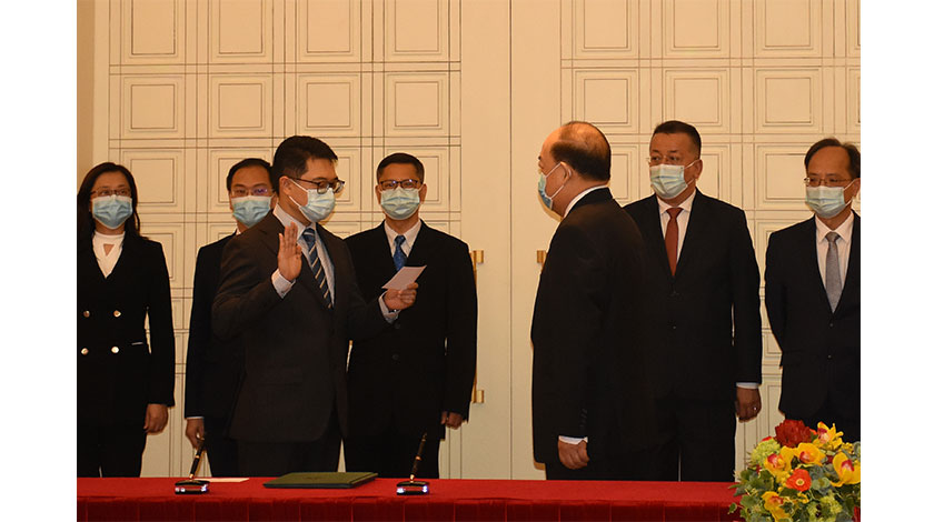 【本報訊】第七屆立法會選舉管理委員會主席唐曉峰,委員黎裕豪、戴祖義、高炳坤、容光亮、陳露,昨午在政府總部向行政長官賀一誠宣誓就職。唐曉峰表示,稍後將與衛生部門商討宣傳期及投票日的防疫措施及預案等。