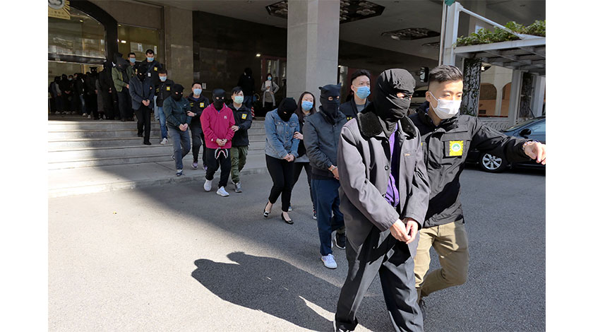 司警於本月二十七日派出一百一十名人員,到本澳十二間店舖,十九個住宅單位和兩間公司搜查,拘捕八名集團主腦和二十二名男女成員,搜得九百六十萬元現金,近三百萬元籌碼,大量電腦設備和POS終端機。內地警方同時出動三百名警員,分別在江蘇、福建、廣東等地區拘捕了三十九名成員。