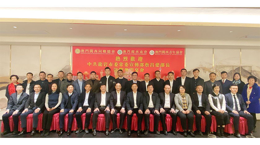 詹昌建代表市委轉達家鄉對疫後閩西鄉親和政協委員的關心,肯定閩西同鄉會在支持家鄉抗疫工作,凝聚鄉親、服務會員、解決困難,支持特區政府依法施政,促進岩澳合作和服務龍岩引資、引才、引智方面所作的貢獻。並對閩西同鄉總會提出四點期望:一是堅守初心,堅持優良傳統,做好團結凝聚鄉親和傳承發展工作;二是在促進閩澳交流合作,助力引資、引才、引智方面發揮更大的作用;三是積極參與澳門社會事務,共建和諧繁榮的澳門,發揮載體作用助力在澳鄉親融入國家發展;四是抓好總會自身建設,做好人才梯隊工作,建設有責任擔當服務團隊。