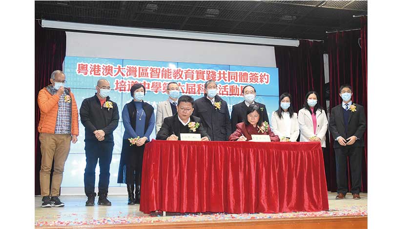 培道昨與內地企業科大訊飛簽署「澳港澳大灣區智能教育實踐共同體」協議及「科普共建」協議,培道學校教育協進會理事長馬有恆、中聯辦教青部副處長岑喜儀及教青局組織暨資訊處長黎玉燕等嘉賓見證。