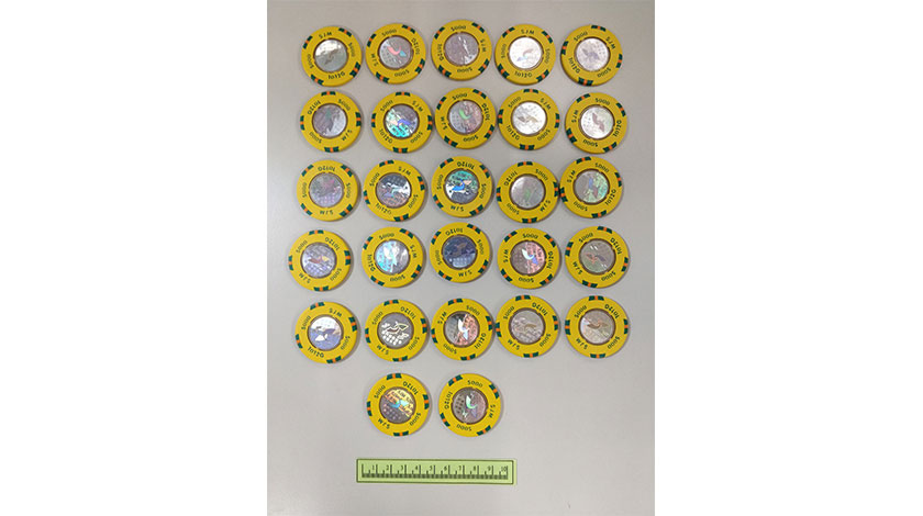 司警將撿得的三十八個面值五千港元的偽造籌碼檢驗,發現籌碼仿真度極高,籌碼上的雷射標籤亦為仿製,一般肉眼無法分辨,需配合儀器驗測。
