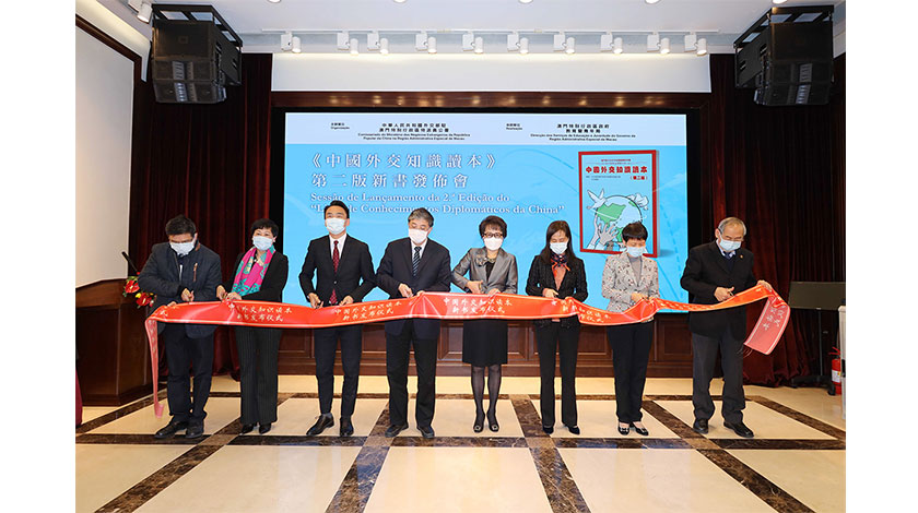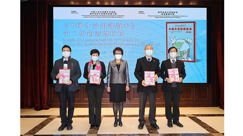 【特訊】1月12日,由外交部駐澳門特派員公署主辦、特區政府教育暨青年局協辦的《中國外交知識讀本》第二版新書發布會在公署隆重舉行。外交公署署理特派員王冬、中聯辦副主任羅永綱、特區政府社會文化司司長歐陽瑜、中聯辦教育與青年工作部部長徐婷、教育暨青年局代局長龔志明、教育暨青年局副局長梁慧琪、公共圖書館管理廳廳長呂志鵬、澳門中華教育會會長陳虹、澳門天主教學校聯會副會長陳文彬、澳門公職教育協會理事區兆添等出席活動。特區中學校長近50人出席。