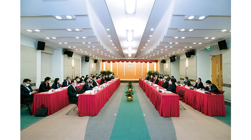 【特訊】行政長官賀一誠於昨日與珠海市委書記、市人大常委會主任郭永航,以及市委副書記、市長姚奕生一行舉行工作會議,雙方就完善珠澳聯防聯控機制,以及推進橫琴粵澳深度合作區工作等議題進行深入磋商。